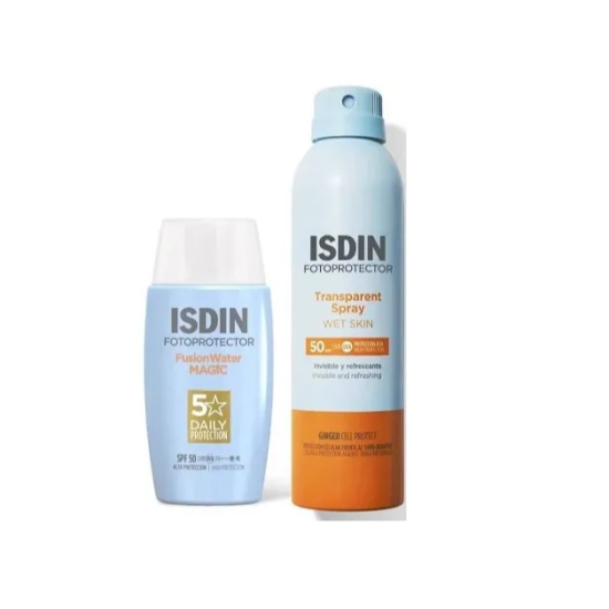Este pack está especialmente diseñado para proteger la delicada piel de los más pequeños. La combinación de Fusion Water Magic Pediatrics SPF50 y Transparent Spray Wet Skin Pediatrics SPF50+ ofrece una protección solar muy alta y completa, ideal para bebés a partir de 6 meses y niños con pieles sensibles o atópicas.
