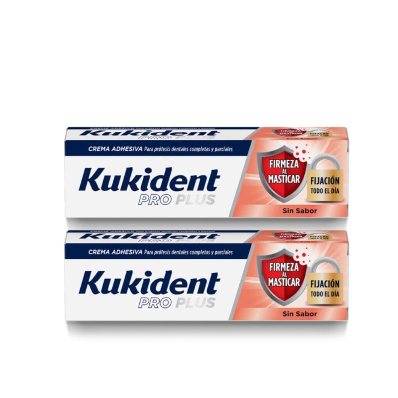Kukident Duplo Firmeza al Masticar es una crema adhesiva en pasta, con sabor neutro, diseñada para estabilizar las dentaduras postizas en la boca, proporcionando una fijación extra fuerte y un efecto sellado anti-residuos. Protege contra la entrada de partículas de comida, permitiendo comer alimentos duros gracias a su excepcional capacidad de fijación, manteniendo hasta el 88% de la fijación inicial al final del día. Además, previene el mal aliento y la placa bacteriana, y actúa como un cojín entre las encías y la prótesis dental para ofrecer un ajuste personalizado.