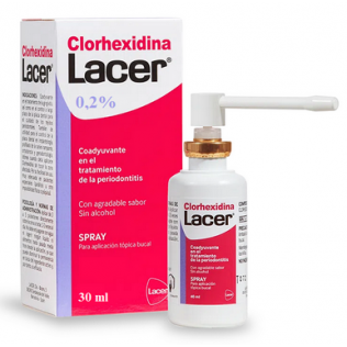 Lacer Clorhexidina 0.2% Colutorio Spray es un enjuague bucal especialmente formulado para actuar como coadyuvante en el tratamiento de afecciones periodontales como la gingivitis y la periodontitis. Su potente fórmula a base de Clorhexidina al 0.2% es altamente efectiva en la reducción de la formación de placa bacteriana, fortaleciendo y tonificando las encías, y combatiendo eficazmente el mal aliento.