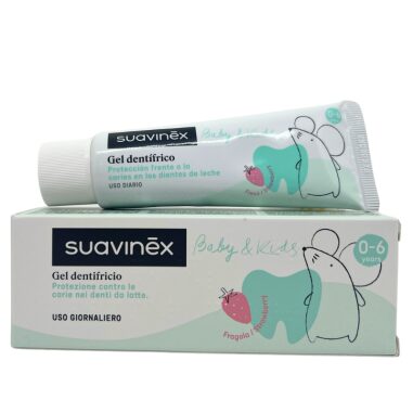 El gel dentífrico Suavinex Baby & Kids está desarrollado para ofrecer una protección anti-caries eficaz en los dientes de leche. Su fórmula completa proporciona los elementos necesarios para una higiene bucodental óptima desde el primer diente.